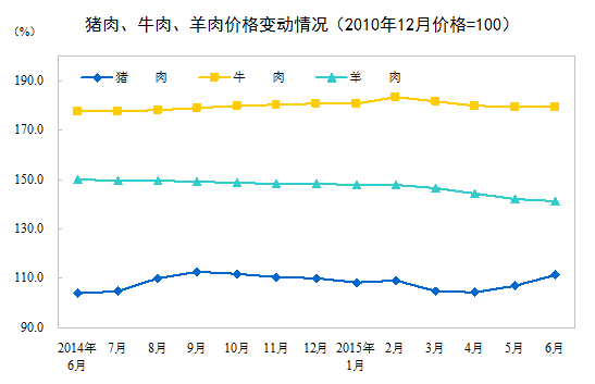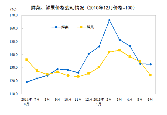 6月份,食品价格同比上涨1.9%,影响居民消费价格总水平上涨约0.62个百分点。其中,鲜菜价格上涨11.4%,影响居民消费价格总水平上涨约0.32个百分点;肉禽及其制品价格上涨3.6%,影响居民消费价格总水平上涨约0.26个百分点(猪肉价格上涨7.0%,影响居民消费价格总水平上涨约0.20个百分点);粮食价格上涨2.1%,影响居民消费价格总水平上涨约0.06个百分点;鲜果价格下降8.8%,影响居民消费价格总水平下降约0.22个百分点;蛋价下降11.3%,影响居民消费价格总水平下降约0.10个百分点。
