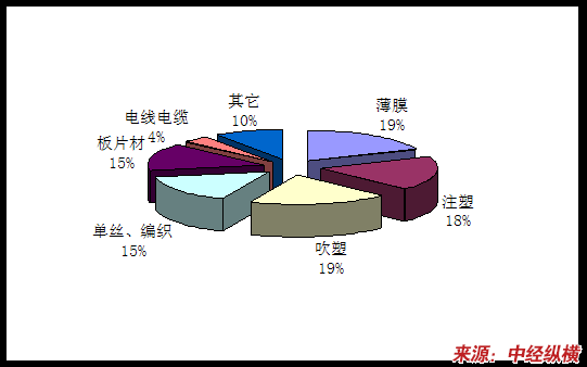 聚乙烯在我国应用相当广泛,薄膜是其最大的用户,约消耗低密度聚乙烯77%,高密度聚乙烯的18%,另外,注塑制品、电线电缆、中空制品等都在其消费结构中占有较大的比例。下面将分应用领域对聚乙烯消费市场进行 分析 。