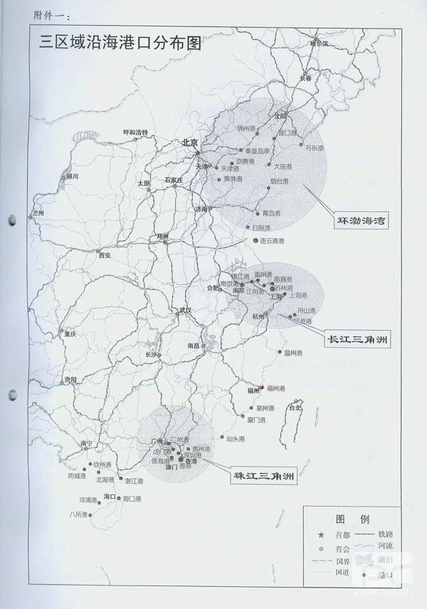 长江三角洲地区包括:上海、南京、镇江、扬州、泰州、南通、江阴、常州、无锡、苏州、嘉兴、湖州、杭州、绍兴、宁波、舟山等16个城市,大陆海岸线、岛屿海岸线分别占全国的21%和39%。2010年前长江三角洲地区需新增港口吞吐能力7亿吨以上,其中:集装箱码头能力3000万标准箱,进口铁矿石接卸能力9000万吨,进口原油接卸能力2500万吨。重点建设集装箱、进口铁矿石、进口原油中转运输系统和煤炭卸船运输系统:以上海、宁波港口为重点,由苏州港等长江下游沿江地区港口共同组成上海国际航运中心集装箱运输系统;以宁波、舟山为主,相应发展上海、南通、苏州、镇江等港口的进口矿石中转运输系统;以宁波、舟山为主,相应发展南京等港口的进口原油中转运输系统;以上海、舟山和电力企业自用码头为主的煤炭卸船中转运输系统。
