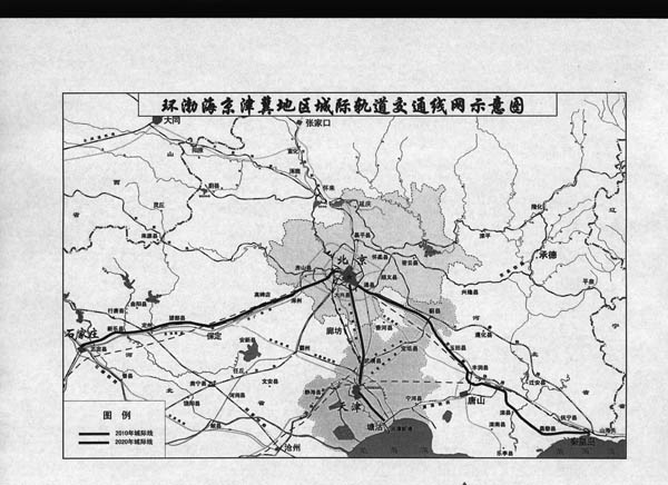 为适应环渤海京津冀地区旅客运输需求快速增长的需要,缓解区域交通运输紧张状况,推进城镇化和经济一体化的进程,建设以北京为中心,以京津为主轴,以石家庄、秦皇岛为两翼的城际轨道交通网络,覆盖京津冀地区的主要城市,基本形成以北京、天津为中心的“两小时交通圈”。到2020年,京津冀地区城际轨道交通总里程达到710公里,线网布局满足区域经济社会发展要求,主要技术装备达到国际先进水平。