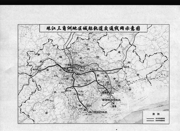 三、珠江三角洲地区城际轨道交通网规划(2005~2020年)。