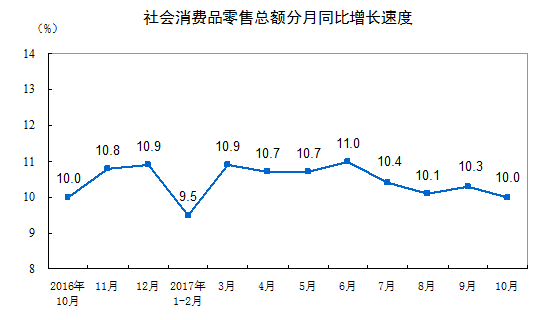 2017年10月份社会消费品零售总额主要数据