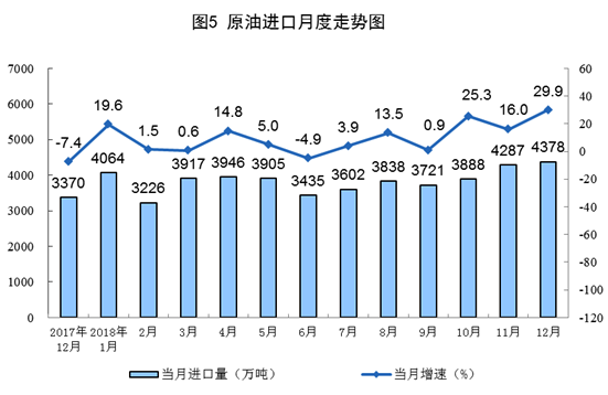 原油进口量再创新高。12月份进口原油4378万吨,同比增长29.9%,进口量环比增加91万吨。全年进口原油4.6亿吨,同比增长10.1%,进口量与生产量之比为2.44:1。