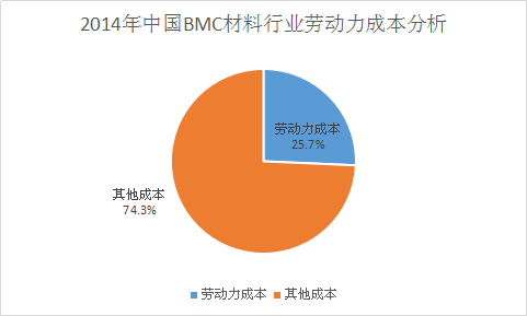 中国劳动力成本近年来整体呈现较为明显的上涨趋势。2001-2013年全国城镇单位就业人员年平均工资从10934元提高到45131元,年均名义增速为14.9%,年均实际增速为12.5%。一方面劳动者生活成本上涨,另一方面“劳动力无限供给”特征逐步消退。中国经济在“十二五”期间将发生资本和劳动力要素相对稀缺性变化,过去廉价的劳动力要素价格要上升。针对BMC材料 行业 来讲,通过调查 分析 可知,2014年劳动力成本占据总成本份额为25.3%。