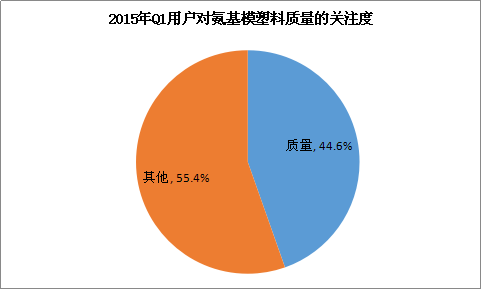 根据对氨基模塑料 行业 的用户的调研 分析 ,用户对氨基模塑料的质量的关注,比例占到44.6%。