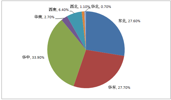 我国大米 行业 产量区域集中度非常高,据2013年统计数据显示,我国大米产量主要集中在华中、华东、东北三大地区,产量分别占同期全国总产量的33.9%、27.7%、27.6%。