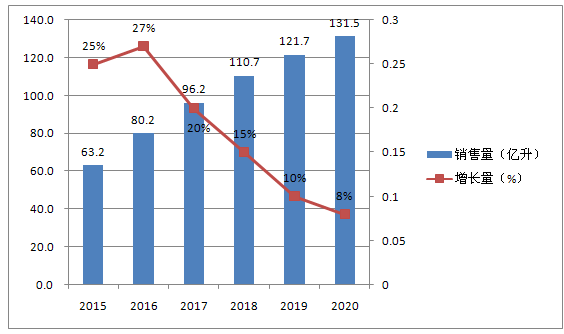 随着投产项目,在建项目、拟建项目产能的陆续释放,预计2016年销售量增长率将达到高点,2016年之后,随着需求的满足,增长率开始下降,预计到2020年,谷物饮料 行业 将保持8%的常态增长。