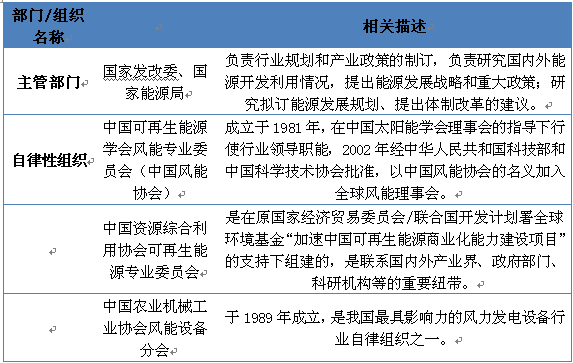 风力发电设备是风能发电系统不可缺少的关键设备,所属 行业 为国家鼓励发展的可再生能源 行业 。 行业 主管部门、各自律性组织及其职能如下表所示。