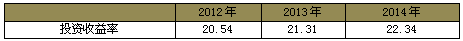 2012年投资收益率为20.54%,2013年投资收益率为21.31%, 2014年投资收益率为22.34%。总体看来,随着未来我国经济大环境的逐步发展,BMC材料投资收益率将稳步提高。