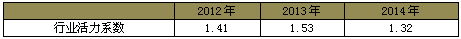 一、2014年相关产业活力系数比较