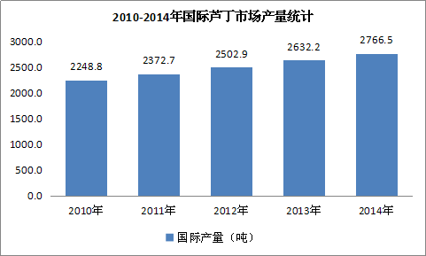 全球患血栓病的人至少有数千万人之众,按每名血栓病患者每天服用500mg的芦丁估算,这是一个巨大的市场需求量。美国市场上已有多种以芦丁为主要原料的保健产品,如芦丁与维生素的合剂(如芦丁+VC,芦丁+VE,芦丁+VK等等)以及芦丁与植物性保健原料的合剂如芦丁与银杏叶提取物片剂,芦丁与沙棘果提取物片剂,芦丁与山楂果提取物片剂,芦丁与紫锥菊提取物片剂等等。总之,芦丁已成为美国医药保健品市场上的新宠儿。