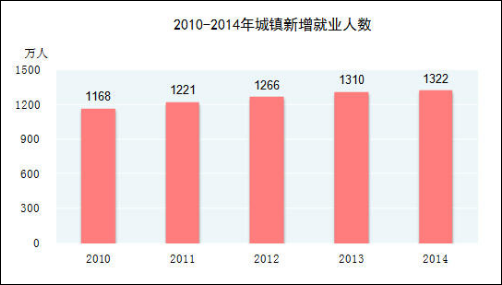 2014年末全国就业人员77253万人,其中城镇就业人员39310万人。全年城镇新增就业1322万人。年末城镇登记失业率为4.09%。全国农民工总量为27395万人,比上年增长1.9%。其中,外出农民工16821万人,增长1.3%;本地农民工10574万人,增长2.8%。
