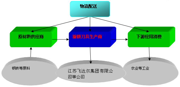 旋耕刀具 行业 的产业链结构 分析 :上游原材料供应商,中游旋耕刀具生产商,下游旋耕刀具应用商,此外还有贯穿产业链的物流配送厂家、销售厂家等。