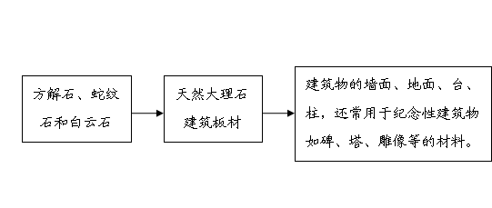 天然大理石主要由方解石、蛇纹石和白云石组成。其主要成分以碳酸钙为主,约占50%以上。加工成各种形材、板材,称为天然大理石建筑板材。