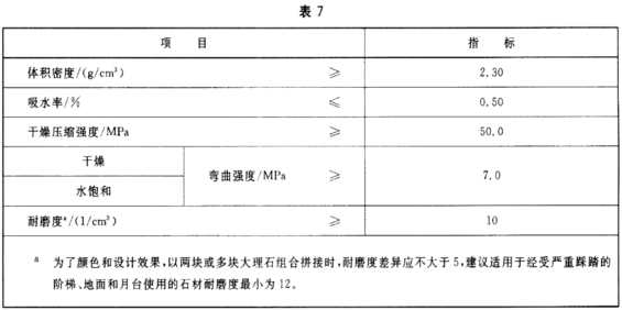 《GB/T19766-2005天然大理石建筑板材》中对天然大理石建筑板材技术指标要求如下: