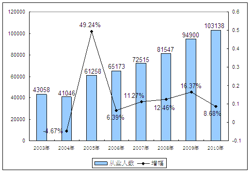 2003-2010年针管所属 行业 企业从业人员发展状况