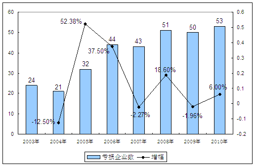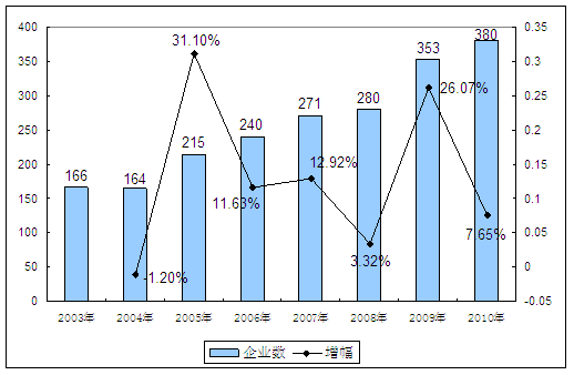 2003-2010年针管所属 行业 企业数量发展状况