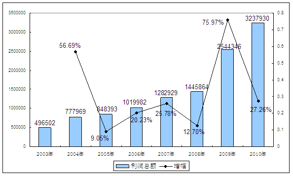 2003-2010年针管所属 行业 利润总额发展状况