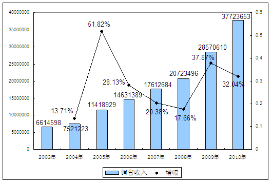 2003-2010年针管所属 行业 销售收入发展状况
