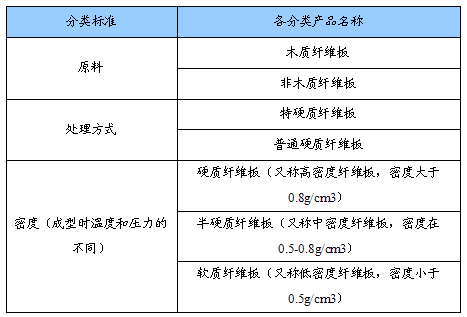上面提到纤维板可按密度分类,具体来说:密度小于0.5g/cm3的为软质纤维板,密度大于0.8g/cm3的称为硬质纤维板,密度在0.5-0.8g/cm3的称为中密度纤维板。纤维板随着密度的变化,产品的物理力学性能有很大的变化,其应用范围也就各有所不同。