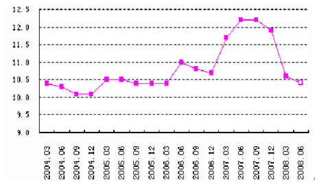 2004-2008年6月我国国内生产总值增长趋势图