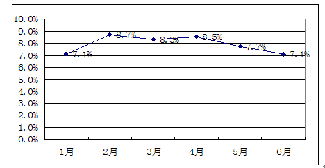 当然,也存在着许多有利于物价涨幅回落的因素。首先,中央已将抑制全面通货膨胀作为今年宏观调控的首要任务,将不断采取各种措施控制物价上涨。今年以来,国家在控制公用品价格上涨同时,又先后对小麦粉等粮食实行出口配额许可证制度,并提升化肥出口关税,降低冻猪肉等食品进口税率,积极通过财政政策缓解通胀预期和压力。其次,今年全国夏粮产量比上年增长2.6%,连续第五年获得丰产丰收,库存与市场供应比较充足,如果秋粮不出现大面积减产,国内粮食价格受国际市场影响不会很大。与此同时,上半年猪牛羊禽肉产量也同比增长4.8%,存栏量同比增加5%,农贸市场猪肉价格涨幅正在呈逐月回落态势。第三,在我国外贸出口增速放缓、国内产能不断增加情况下,国内商品市场供给会进一步扩大,消费品市场总体上供大于求矛盾将越来越突出,商品供应者在激烈的市场竞争下难以进一步提高价格。第四,由于去年下半年物价上涨较快,导致今年价格翘尾因素较大。随着年末临近,计算CPI时同比基数将逐渐增大,CPI涨幅将逐渐减小。