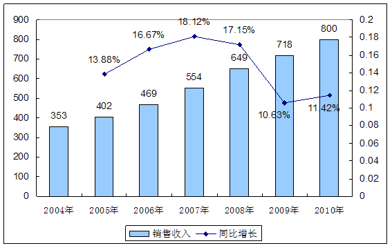2004-2010年全球卫星电视直播(DBS/DCH)销售收入
