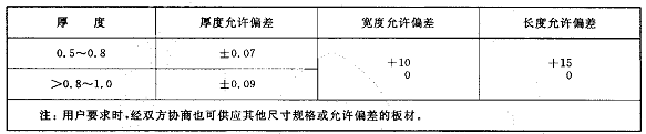 板式换热器用钛板尺寸允许偏差