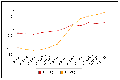 2009年5月-2010年4月我国CPI指数同比增长变化情况