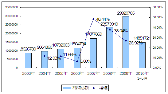 2003-2010年1-5月化学药品制剂制造 行业 利润总额发展状况