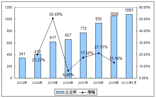 2003-2010年5月微电机及其他电机制造 行业 企业数量发展状况