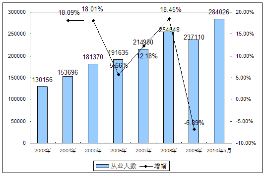 2003-2010年5月微电机及其他电机制造 行业 从业人员发展状况