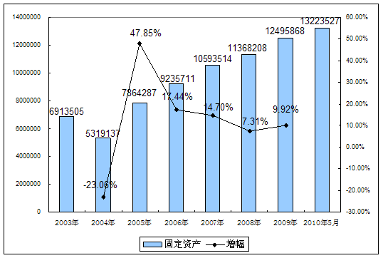 2003-2010年5月微电机及其他电机制造 行业 固定资产发展状况