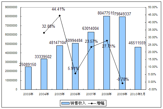 2003-2010年5月微电机及其他电机制造 行业 销售收入发展状况