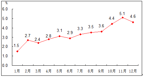 居民消费价格一季度同比上涨2.2%,二季度上涨2.9%,三季度上涨3.5%,四季度上涨4.7%,全年平均比上年上涨3.3%,其中食品价格上涨7.2%。固定资产投资价格上涨3.6%。工业品出厂价格上涨5.5%。原材料、燃料、动力购进价格上涨9.6%。农产品生产价格上涨10.9%。