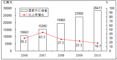 年末国家外汇储备28473亿美元,比上年末增加4481亿美元。年末人民币汇率为1美元兑6.6227元人民币,比上年末升值3.0%。