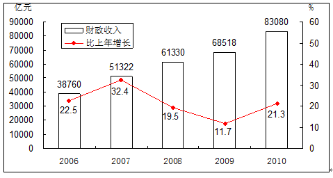 全年财政收入83080亿元,比上年增加14562亿元,增长21.3%;其中税收收入73202亿元,增加13680亿元,增长23.0%。