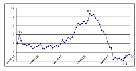 5、居民消费价格全年比上年下降0.7%。,年底出现上升。
