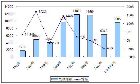 2003-2010年专项化学用品制造 行业 利润总额发展状况