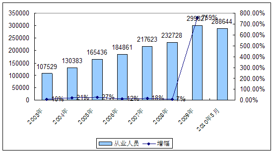 2003-2010年专项化学用品制造 行业 从业人员发展状况