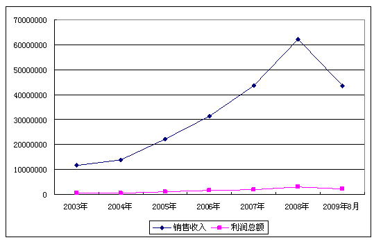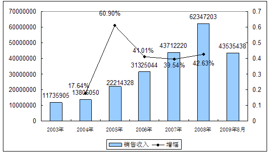 2003-2009年8月 行业 销售收入发展状况