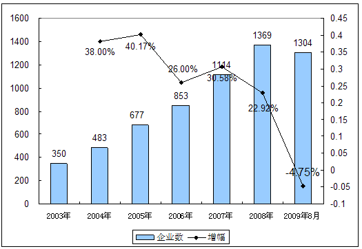 一、2003-2009年8月 行业 企业数量发展状况