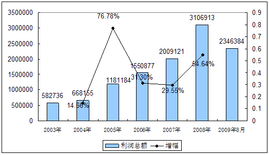 五、2003-2009年8月 行业 利润总额发展状况