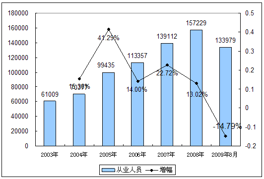 二、2003-2009年8月 行业 从业人员发展状况