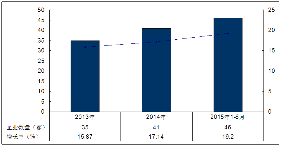 图表 3 2013-2015年6月我国旋耕刀具 行业 企业数量 分析