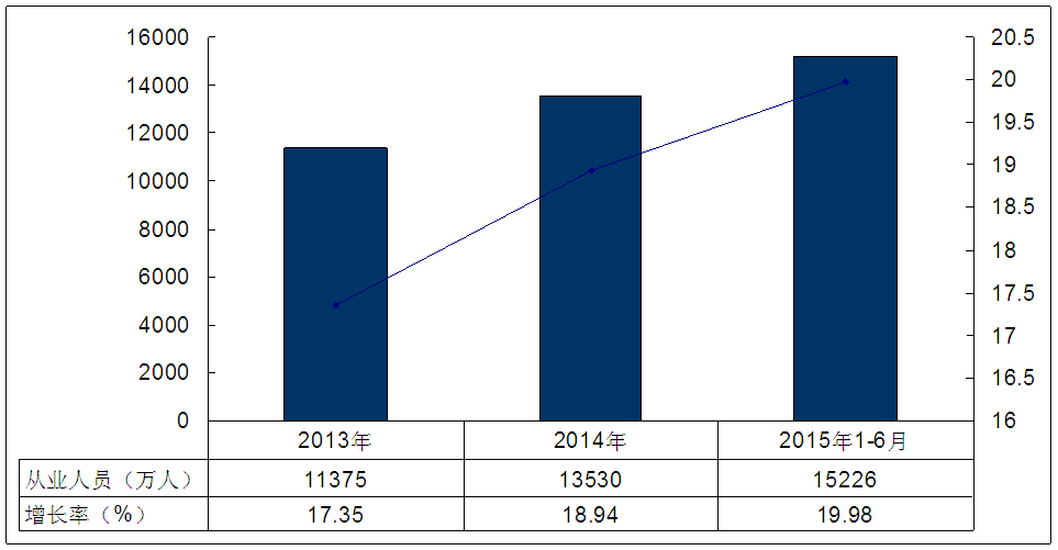 图表 4 2013-2015年6月我国旋耕刀具 行业 从业人数 分析