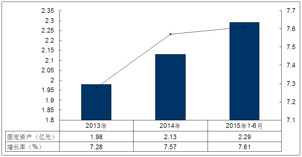 图表 5 2013-2015年6月我国旋耕刀具 行业 固定资产 分析