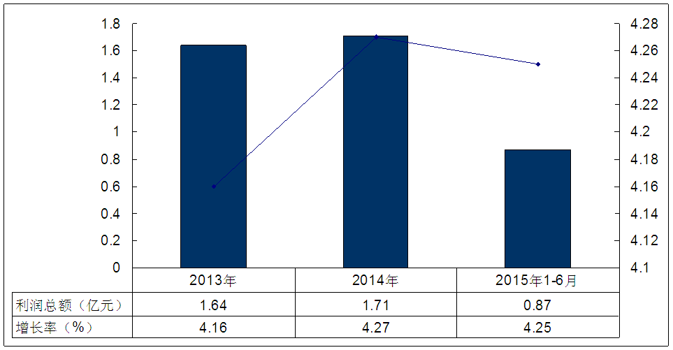 图表 7 2013-2015年6月我国旋耕刀具 行业 利润总额 分析