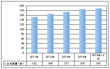 图表 3 2011-2015年2月我国运动护具 行业 企业数量 分析