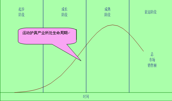 生命周期理论认为, 行业 的生命周期一般有一百年到几百年的时间,最短的也有60年左右,由于运动护具产业产品与人类的物质文化生活息息相关,所以至少能够肯定运动护具产业 行业 的生命周期将会是很长的。